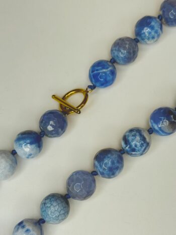 Cada pieza está elaborada a mano, una a una, con ágatas facetadas de gran tamaño que reflejan la luz de forma única, aportando brillo, profundidad y carácter.