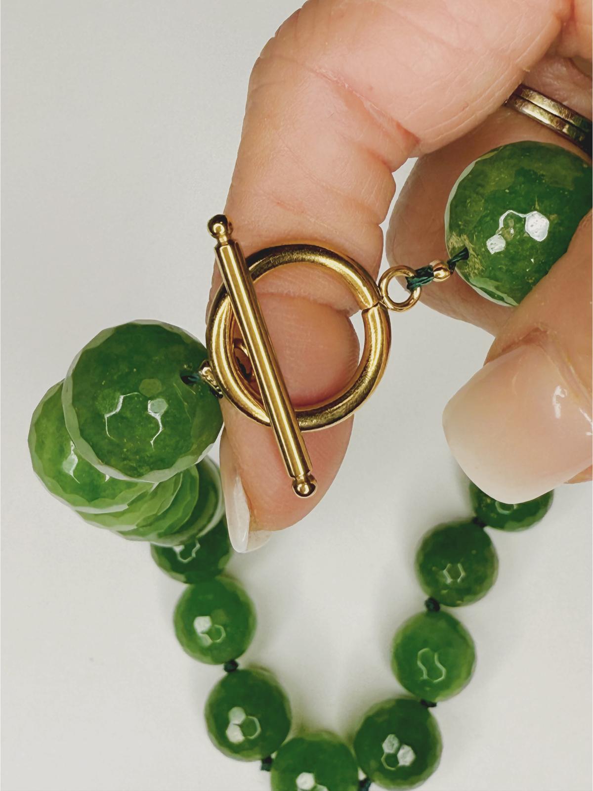 Cada pieza está elaborada a mano, una a una, con ágatas facetadas de gran tamaño que reflejan la luz de forma única, aportando brillo, profundidad y carácter.