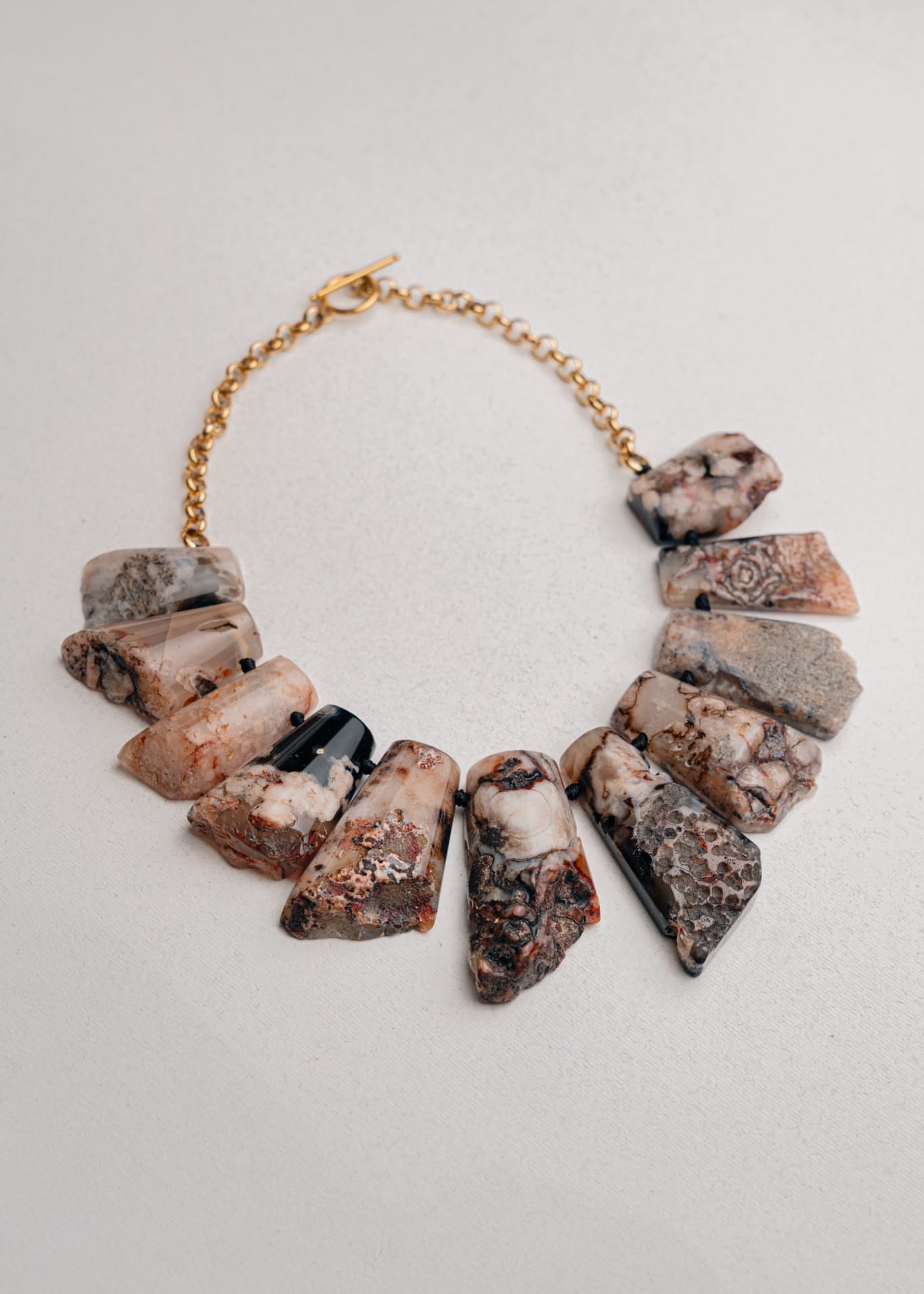 El Collar Tótem es nuestra pieza más especial. Está hecho a mano con ágatas naturales, seleccionadas una a una. Cada piedra tiene sus propios colores y vetas, así que no existe otro collar igual al tuyo.